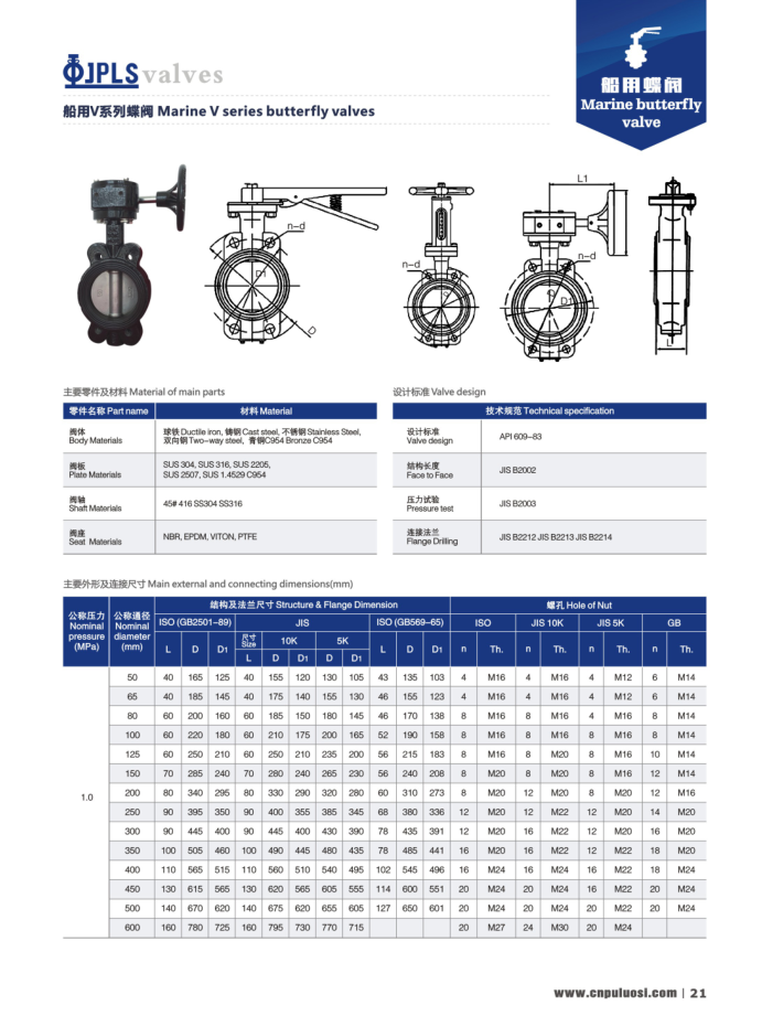 船用閥門是為滿足船舶環(huán)境條件,用于控制船舶管路內(nèi)流體的壓力、 流量和流動(dòng)方向的設(shè)備。 閥門是流體管路的控制裝置,其基本功能是接通或切斷管路介質(zhì)的流通,改變介質(zhì)的流通,改變介質(zhì)的流動(dòng)方向,調(diào)節(jié)介質(zhì)的壓力和流量,保護(hù)管路的設(shè)備的正常運(yùn)行。船用蝶閥采用上裝式結(jié)構(gòu),在高壓、大口徑條件下減少了閥體自身的連接螺栓,增強(qiáng)了閥門的可靠性且能克服系統(tǒng)自重對閥門正常工作的影響。船用蝶閥廣泛應(yīng)用于煤化工、石油化工、橡膠、造紙、制藥等管道中作介質(zhì)的分流合流或流向切換裝置。
